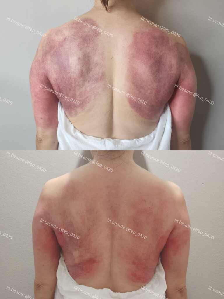 A: Not if performed correctly by trained professionals. There’s no risk of darkening or scarring. Just avoid sun exposure, exfoliation, and hot environments for a week post-treatment.